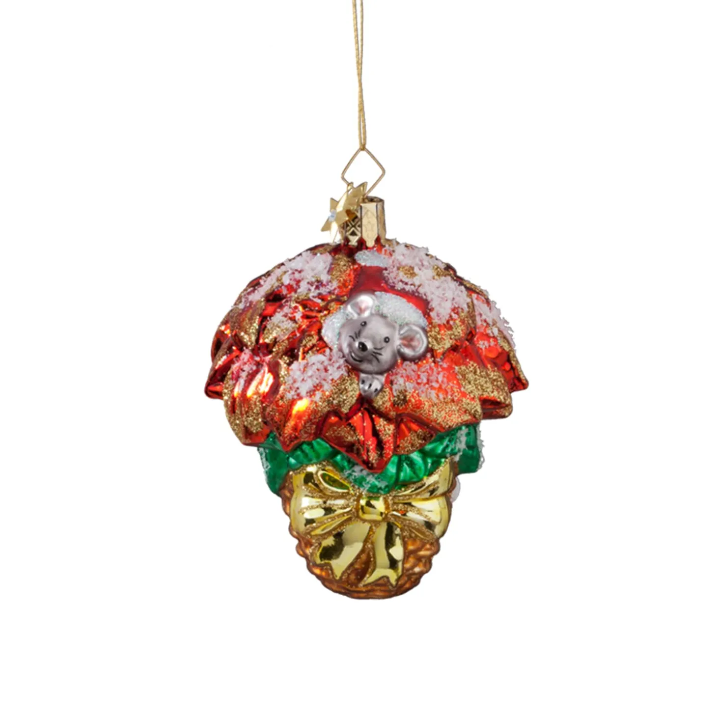 Golden Bells, Silver Baubles, Colorful Wooden Ornaments And Twinkling Lights. Christmas Decoration This Year Is Once Again A Success. Colorful, It Makes The Whole House Shine And Gives Rise To Anticipation Of The Upcoming Christmas. The Real Highlight, However, Can Be Seen Only On Closer Look: The Christmas Poinsettia.Its Green And Red Leaves Form The Perfect, Christmas Contrast, Which Is Complemented By A Golden Bow. Of Course, This Also Pleases The Little Mouse That Peeps Out Cheerfully Between The Leaves.