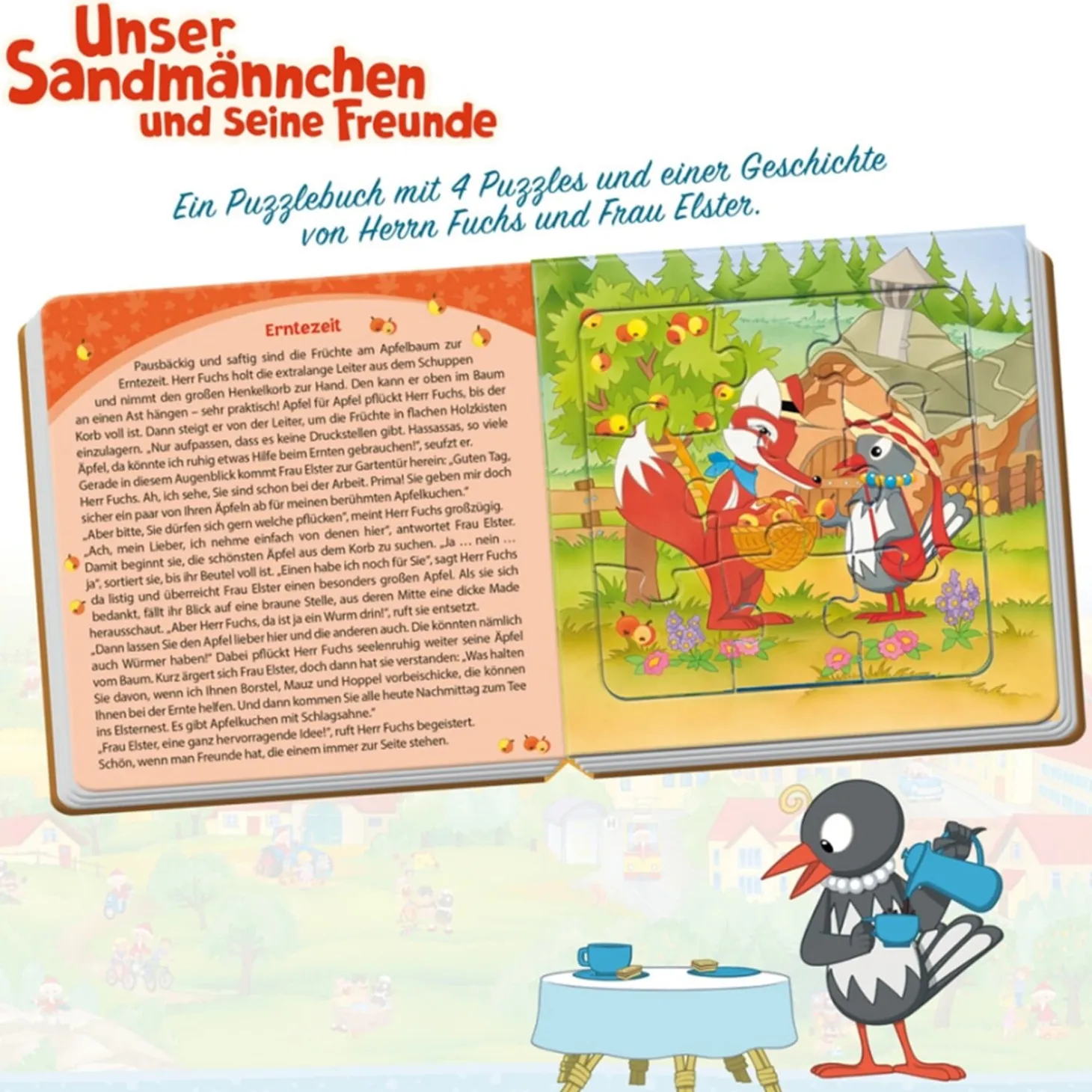 Colorful Puzzle Book With The Fox And Teh Magpie From Famous Tv Series “The Sandman And Friends”.