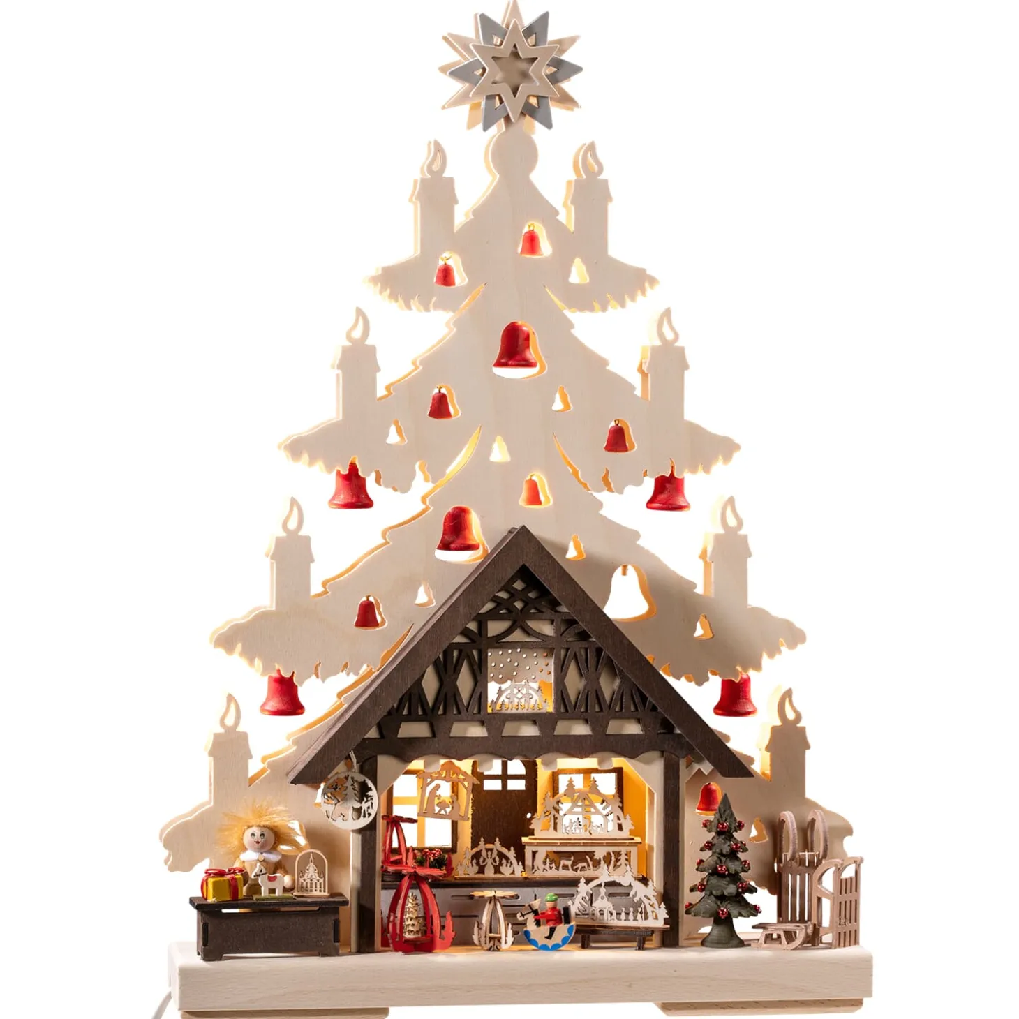 It Is A Symbol Of The High Craftsmanship That Characterises The Woodwork From The Erzgebirge. Once They Were An Additional Income For The Miners In Winter. Today, Schwibbogen Have Been A Popular Decoration For The Christmas Season For Over 80 Years. In Complex And Meticulous Handiwork, Beautiful Landscapes Are Created, Which Are Set In Scene By The Atmospheric Lighting. The Light Of The Schwibbogen Shines Particularly Beautiful On The Windowsill Where It Creates An Inviting Atmosphere. But Also On A Table Or A Shelf A Schwibbogen Is A Festive Eye-Catcher.