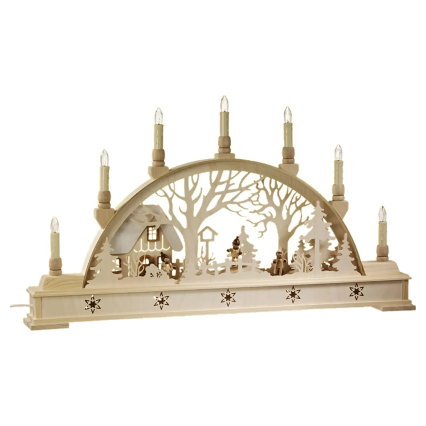 It Is A Symbol Of The High Craftsmanship That Characterises The Woodwork From The Erzgebirge. Once They Were An Additional Income For The Miners In Winter. Today, Schwibbogen Have Been A Popular Decoration For The Christmas Season For Over 80 Years.In Complex And Meticulous Handiwork, Beautiful Landscapes Are Created, Which Are Set In Scene By The Atmospheric Lighting.The Light Of The Schwibbogen Shines Particularly Beautiful On The Windowsill Where It Creates An Inviting Atmosphere. But Also On A Table Or A Shelf A Schwibbogen Is A Festive Eye-Catcher.