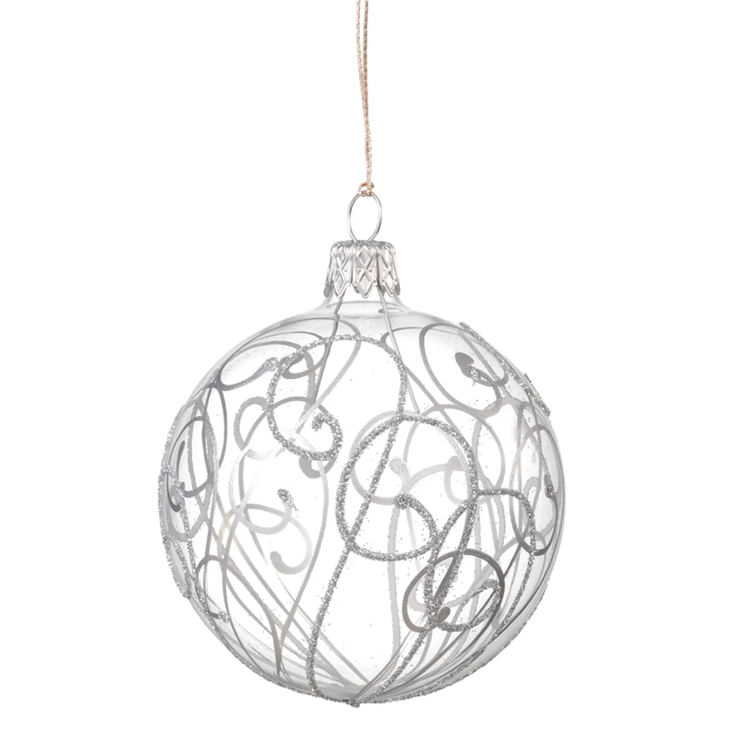 Glass Bauble Clear With Silver Squiggles, 7 Cm