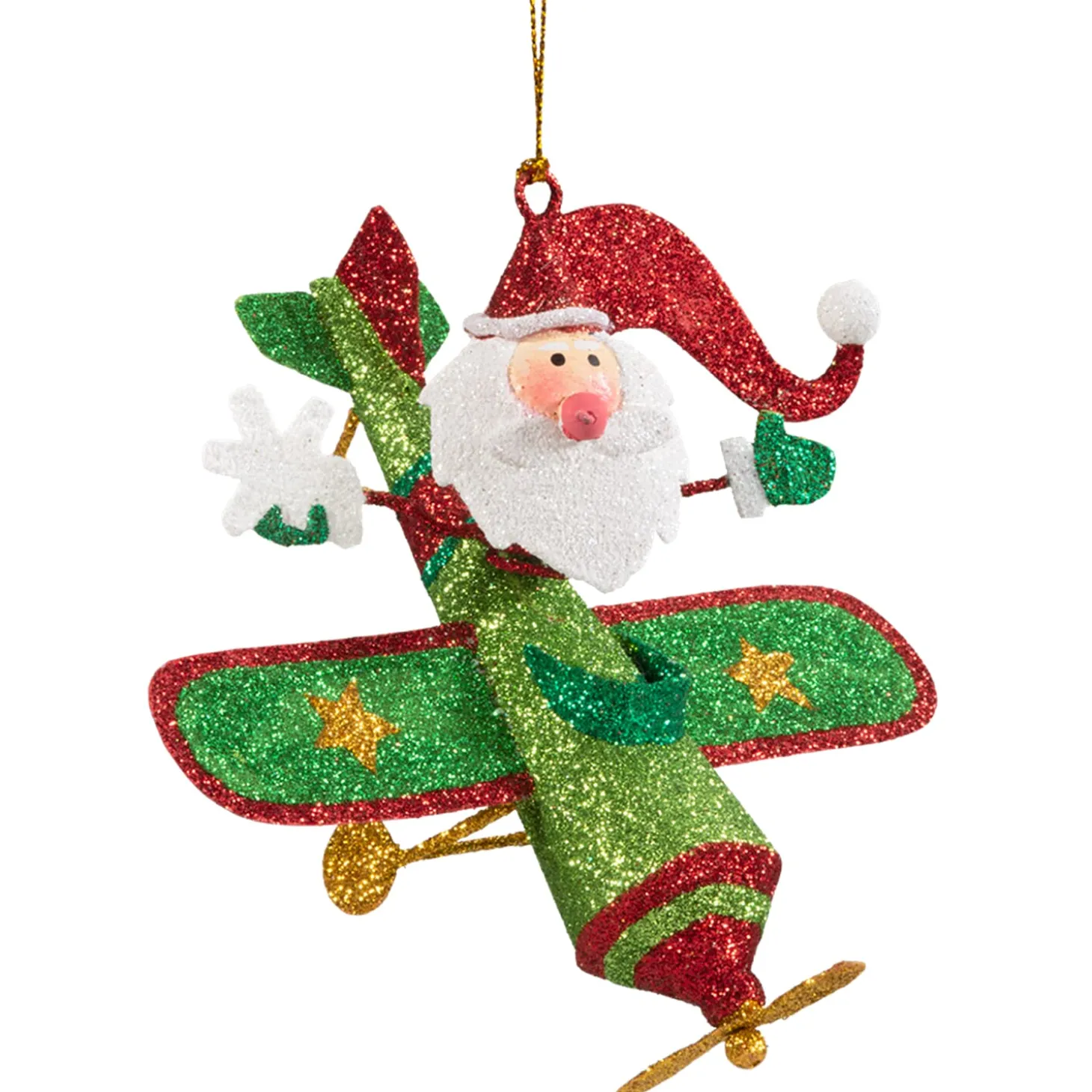 Sparkling Santa Claus In An Airplane For An Unusual, Festive Decoration