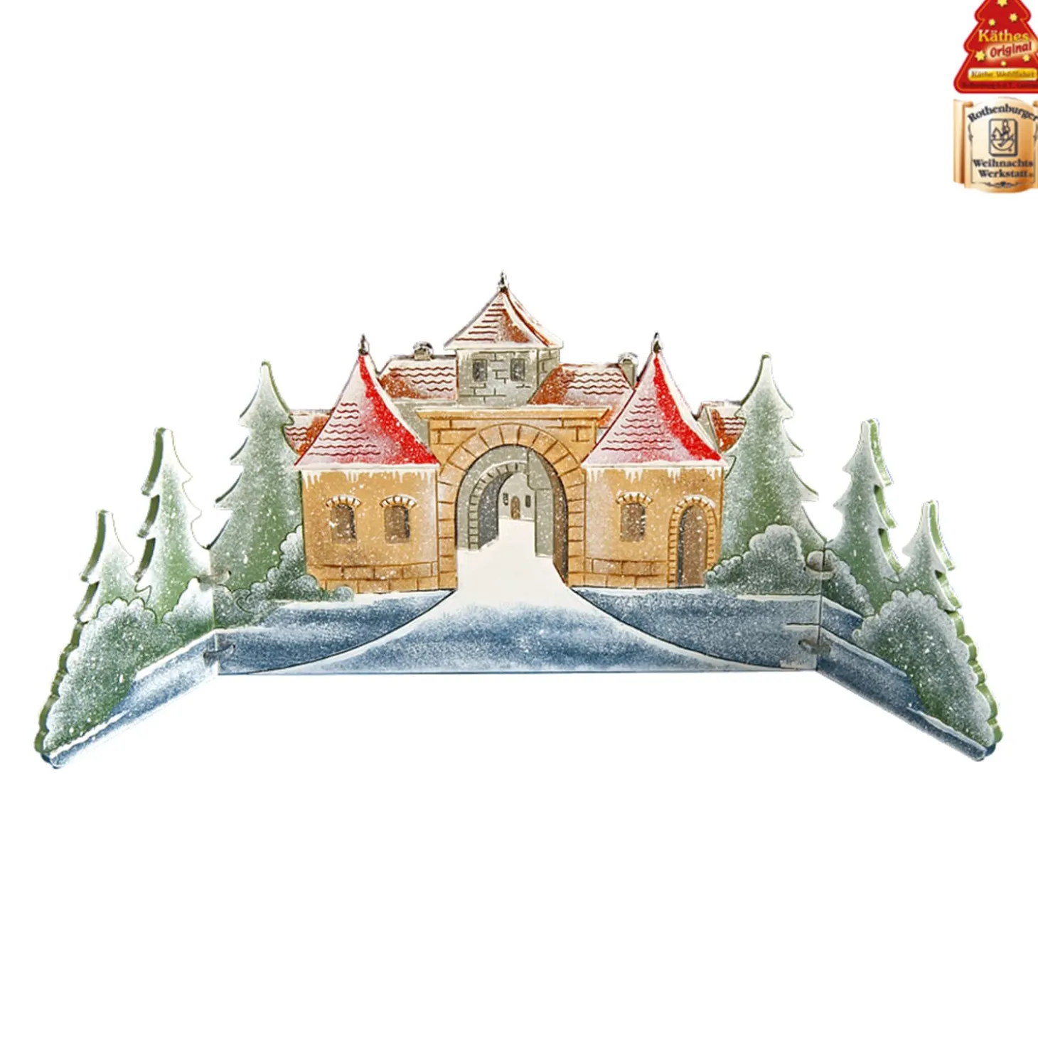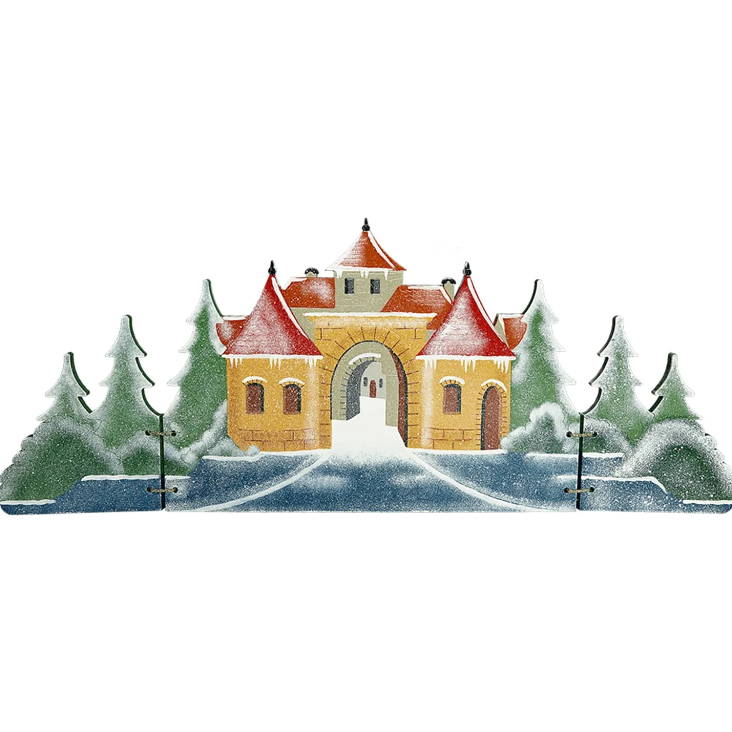 The Winter House Background Will Beautifully Complement Your Little Winter World. The City Gate And Its Tower, As Well As The Snow-Covered Fir Forest Will Put Your Winter Landscape In The Spotlight!